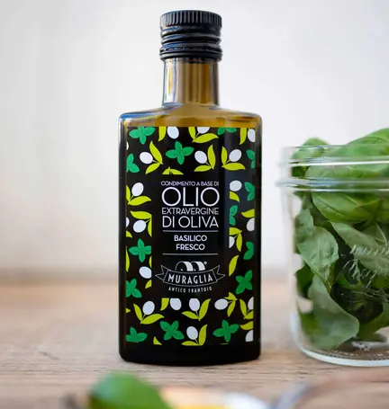 Frantoio Muraglia har besluttet at kombinere renheden af sin ekstra jomfru olivenolie med råvarer udvalgt og eftertragtet fra områdets fortræffeligheder. En smagfuld kombination, der finder sin stilistiske signatur i ordet fusion.