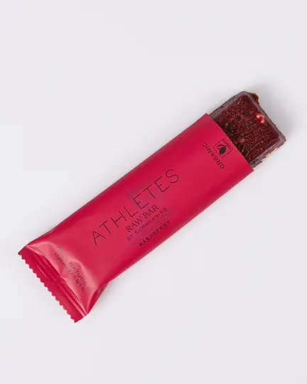 Frugtig raw bar med hindbær, knasende sprøde spanske mandler og hasselnødder fra Italien.